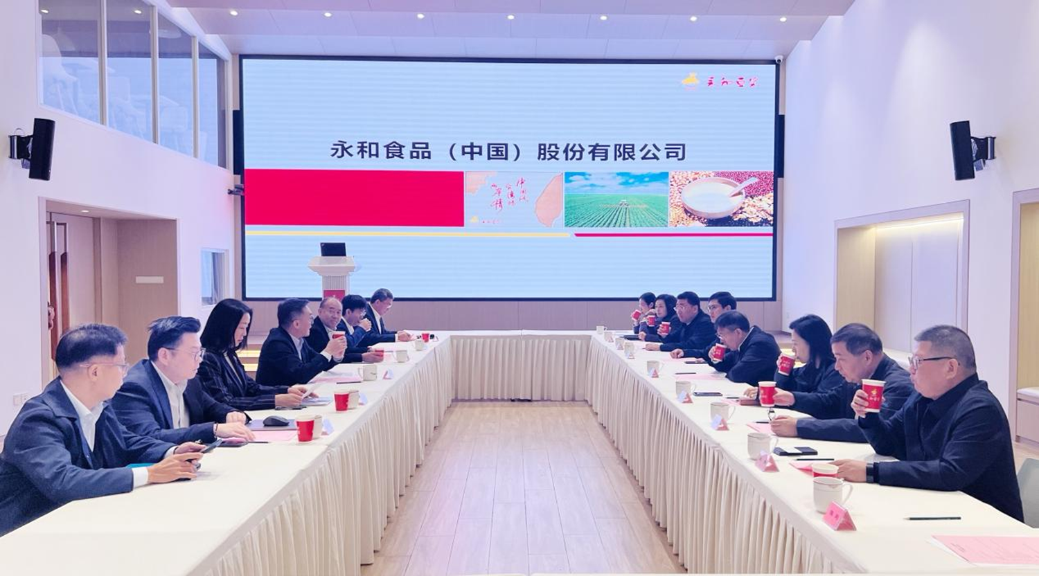 11月25日,農(nóng)業(yè)農(nóng)村部原總經(jīng)濟師、辦公廳(對臺灣農(nóng)業(yè)事務(wù)辦公室)主任、海峽兩岸農(nóng)業(yè)交流協(xié)會會長魏百剛一行調(diào)研走訪永和食品集團總部,就進一步深化兩岸農(nóng)業(yè)交流合作進行探討。魏百剛會長一行詳細聽取了永和食品發(fā)展歷程、生產(chǎn)經(jīng)營等情況介紹,雙方在座談會上聚焦產(chǎn)品研發(fā)、品牌打造、市場開拓等企業(yè)核心發(fā)展話題。