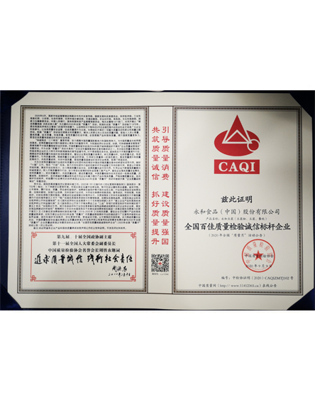 20209 月永和食品(股份)有限公司榮獲全國(guó)百佳質(zhì)量檢驗(yàn)誠(chéng)信標(biāo)桿企業(yè)稱號(hào) -