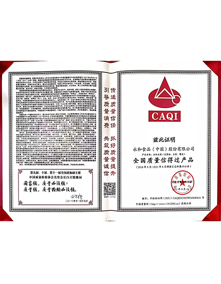 20232 月永和食品(中國(guó))股份有限公司榮獲全國(guó)質(zhì)量檢驗(yàn)信得過(guò)產(chǎn)品 -