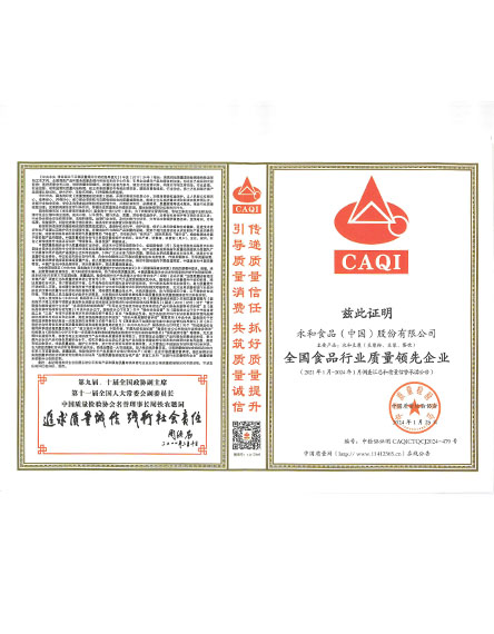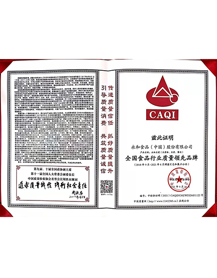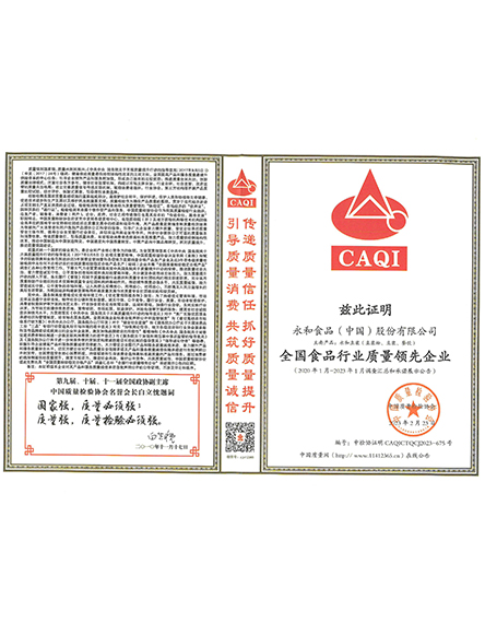 20232 月永和食品(中國(guó))股份有限公司榮獲全國(guó)食品行業(yè)質(zhì)量領(lǐng)先企業(yè) -