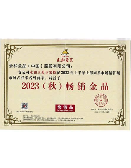 20239 月永和豆?jié){豆?jié){粉榮獲2023(秋)暢銷金品 -