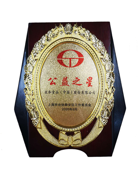 20209 月永和食品(中國(guó))股份有限公司榮獲上海市臺(tái)協(xié)靜安區(qū)工作委員會(huì)頒發(fā)的公益之星稱號(hào) -