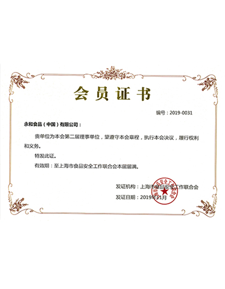 201911 月2019年永和食品(中國(guó))股份有限公司成為上海市食品安全工作聯(lián)合會(huì)第二屆理事單位 -