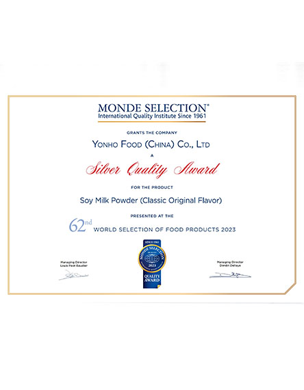 20235 月永和食品旗下經(jīng)典原味豆?jié){粉350g榮獲世界品質(zhì)評(píng)鑒大獎(jiǎng) -
