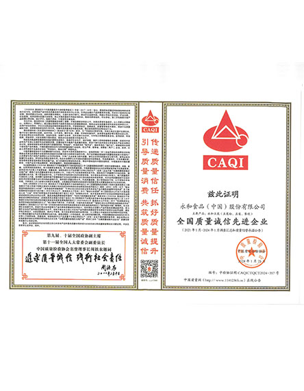 20241 月永和食品(中國(guó))股份有限公司榮獲全國(guó)質(zhì)量誠(chéng)信先進(jìn)企業(yè) -